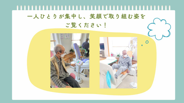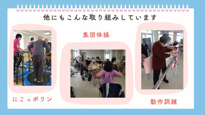 4・楽しみながらリハに取り組んでもらえるよう、集団で行うリハビリや個別教室などにも力を入れています。